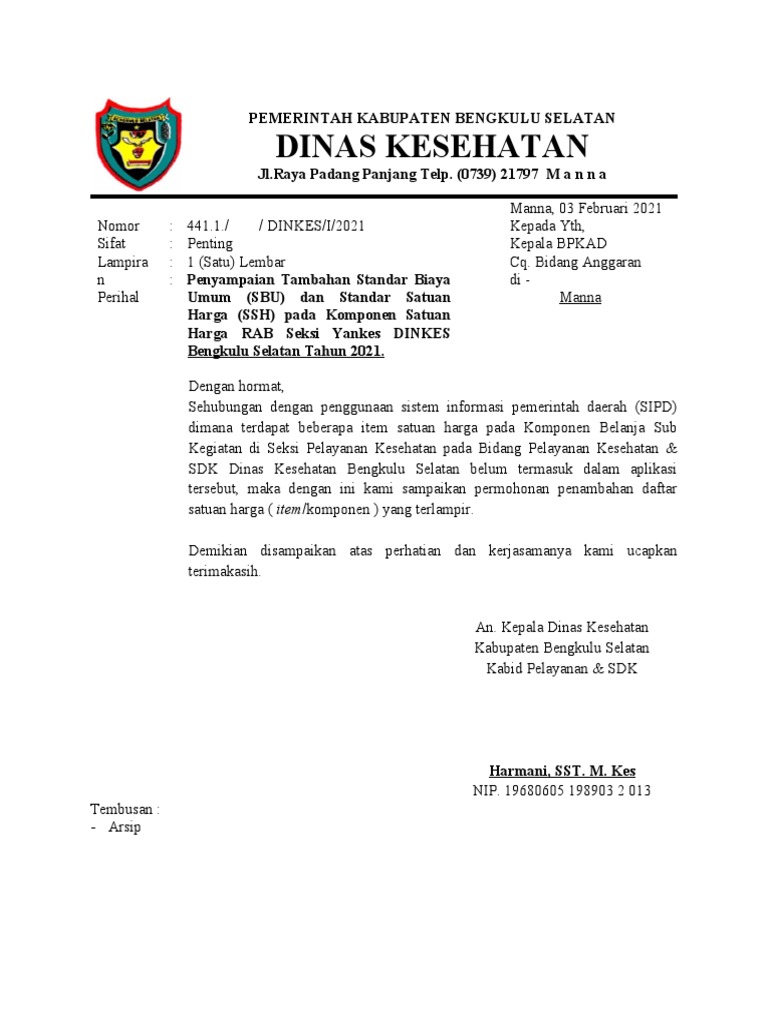 Surat Permohonan Penambahan Komponen Biaya Sipd Pdf